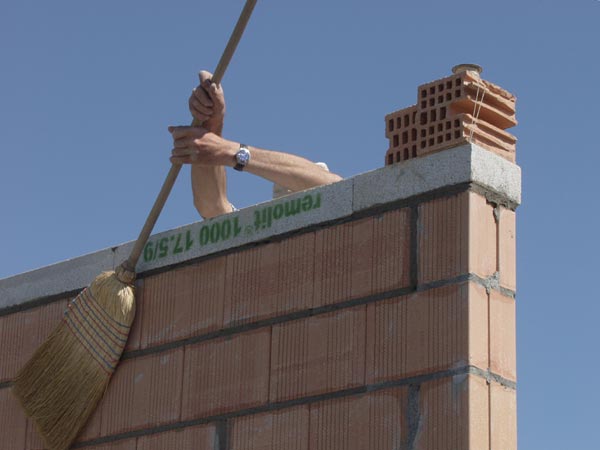 19. Mai 04: Der letzte Stein des Erdgeschosses wird gesetzt: